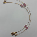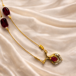 A delicate pendant chain featuring a rich ruby-toned stone framed with subtle sparkle, paired with minimal bead detailing 💛