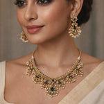 A beautiful Guttapusalu necklace with pearl drops and ruby-emerald accents, paired with matching earrings — all at an affordable price 💛