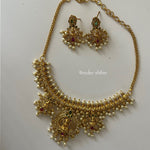 A divine temple-style necklace featuring a graceful devi motif, enriched with pearl cascades and ruby-emerald accents 💛