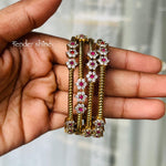 This beautiful bangle set comes in a pack of 4, designed with elegant AD stone flower detailing.