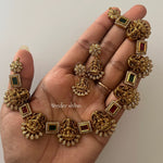 A divine temple-style necklace adorned with Lakshmi motifs, ruby-emerald accents, and sparkling kundan detailing 💛