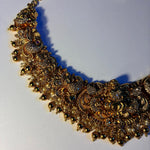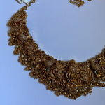 A grand temple-style bridal necklace set adorned with an exquisite Mahalakshmi motif, intricate antique detailing, and rich gold tones 💛