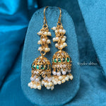 Premium jhumkas adorned with pearls and comes with hooks.